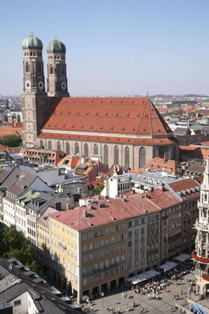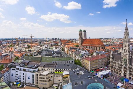 MUNICH, GERMANY - JUL 9, 2011: Aerial view to Marienplatz, New Town Hall and Frauenkirche in Munich, Germany.