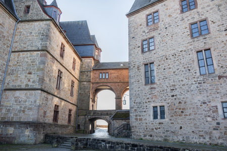 View of the old city wall in the historic old town of Mayen in the Eifel