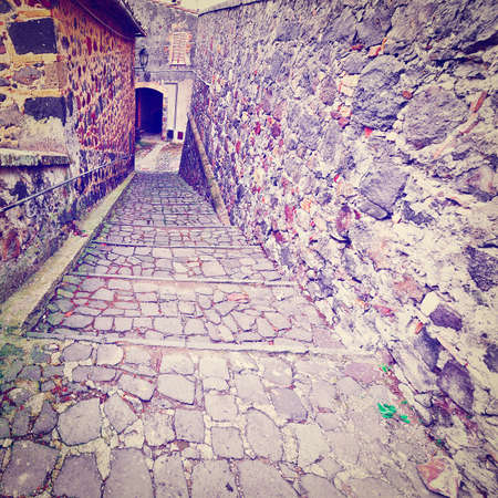 Narrow Alley with Old Buildings in Italian City of Torre Alfina