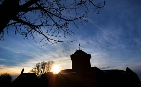 Sunset landscapes of an ancient castle, medieval French town in Chateau-Chalon, Burgundy, France
