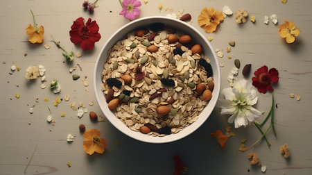 top view bowl with homemade granola. Resolution and high quality beautiful photo