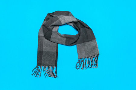 Elegant Gray Checkered Scarf on Vibrant Blue Background for Fashion and Style Concepts