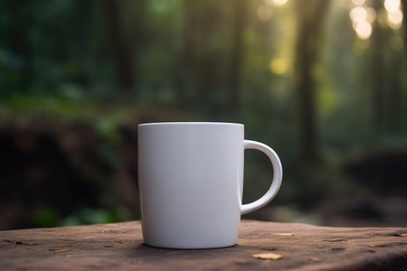 White Ceramic Mug on a Natural Backdrop. Generative AI