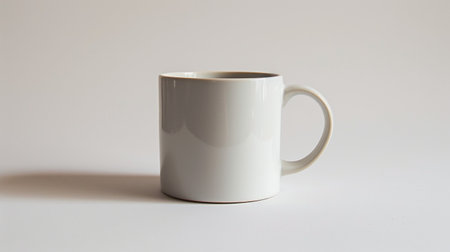 The white ceramic mug is insulated on a neutral background with soft natural shadows, ready for applying a logo or text.