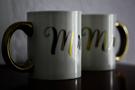 Two mugs with Ms and Mrs golden inscriptions