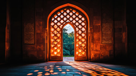 The ancient mausoleum ornate arches showcase Arabic elegance and spirituality generated by artificial intelligence