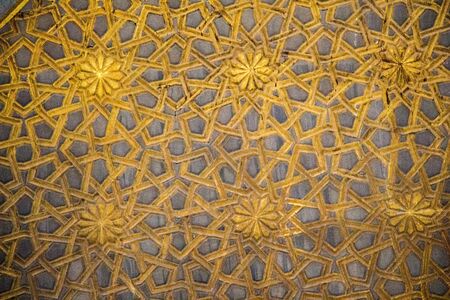 Arabic decorations close up on a wooden door.