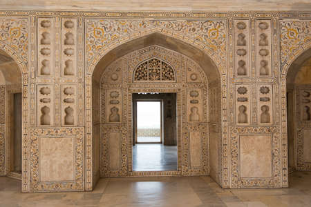 Arches at the Agra Fort, magnificent fortified palace in India This maharajah residence is an Unesco world heritage site