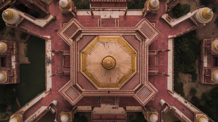 Stunning aerial view capturing the intricate design and symmetry of historical architecture. This majestic structure showcases cultural heritage and beautiful artistry.