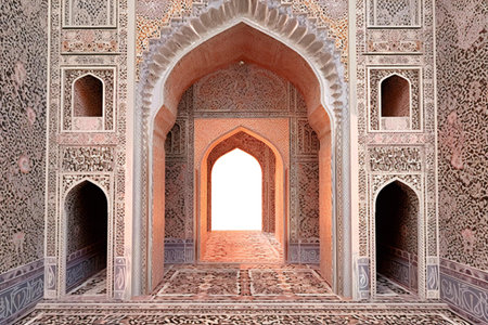 illustration of the entrance to the Taj Mahal, Agra, India