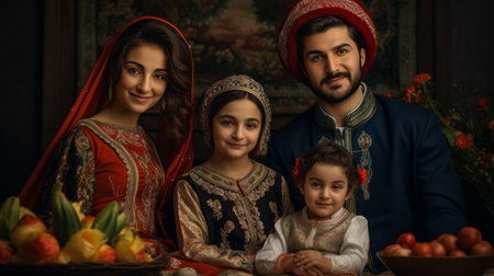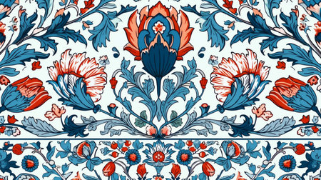 This ornate vintage background features a decorative border and vibrant colors, perfect for various design projects that require elegance and cultural richness.
