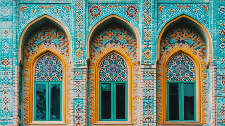 Beautifully detailed architecture featuring vibrant tiles and elegant windows, showcasing traditional craftsmanship and artistic design elements. Perfect for decor.