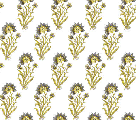 seamless Indian mughal flower motif white background