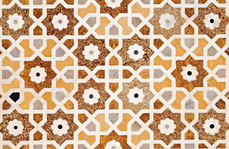Geometric pattern background on the wall of Taj Mahal palace in Agra city, Uttar Pradesh state of India