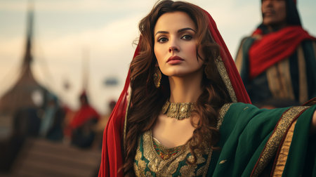 Portrait of a beautiful young Muslim woman in traditional costume.