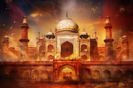 The ancient mausoleum ornate arches showcase Arabic elegance and spirituality generated by artificial intelligence