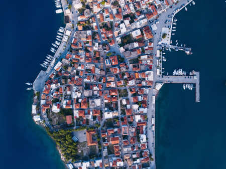 Aerial view of Ermioni harbors, Aegean sea, Greece.