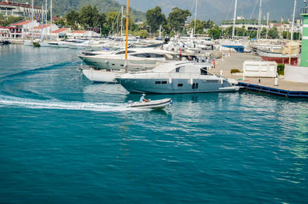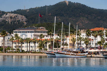 TURKEY, MARMARIS - APRIL 30, 2017: Port with yachts boats and boats in the touristic eco-friendly city of Marmaris in Turkey.