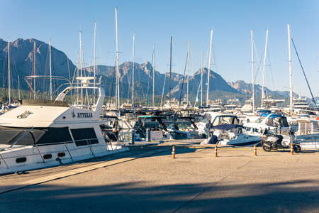 Kemer, Turkey - November 07, 2021: marina harbor with moored sea yachts