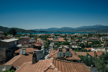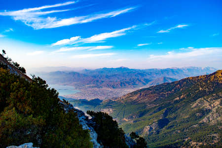 Aerial view of Fethiye landscape and cityscape. View from top. Fethiye, Mediterranean sea, Turkey. High quality photo