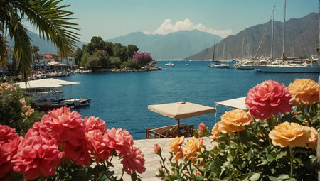 Amazing top view on Marmaris Turkey resort near the Mediterranean Sea. Summer travel vacation.