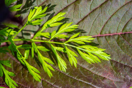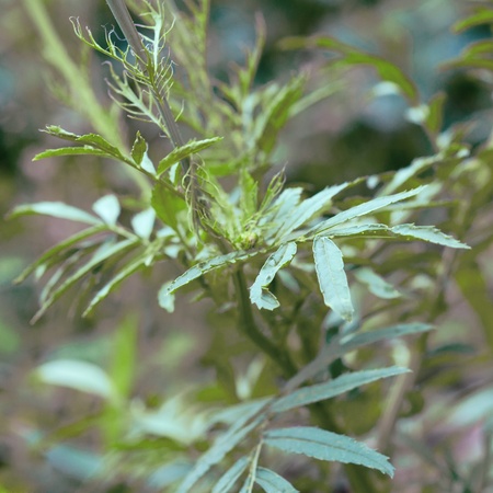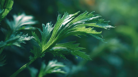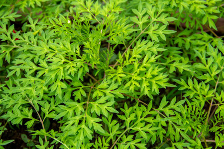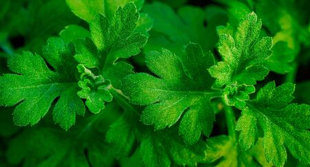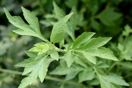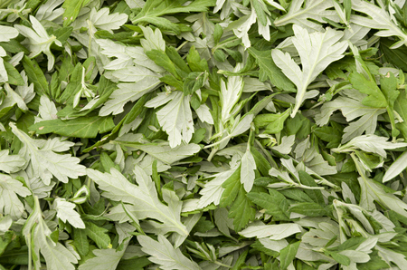 Close up of a green fresh mugwart leaves.