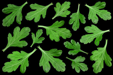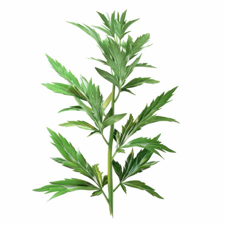 Fresh green mugwort leaves on a white background.