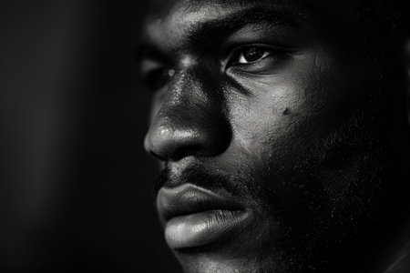 Determined African American Man Contemplating His Future at Dawn, Reflecting on Resilience and Focus