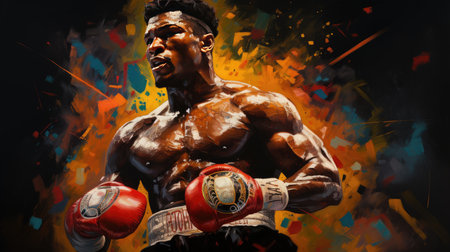 Portrait of a professional boxer with boxing gloves. Mixed media.