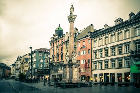 Zurich city center, Switzerland. Zuerich old town with famous Munsterhof fountain and historic houses in winter