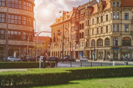 Poland, Wroclaw, September 20, 2018 Central Street of Wroclaw, Old architecture in the city, Europe