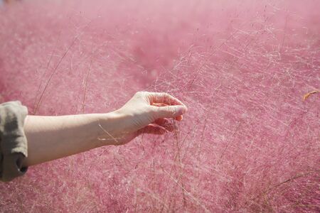 Close up of Pink Muhly Grass in autumn, South Korea