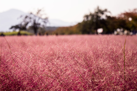 The red grass field in the morning at korea.