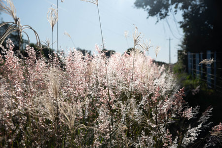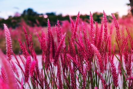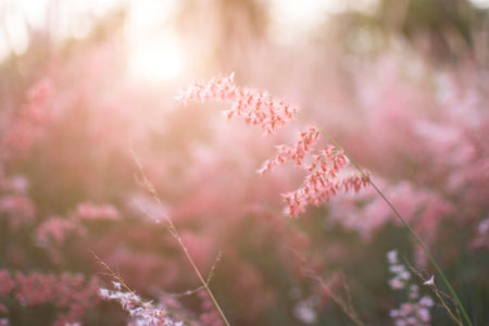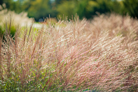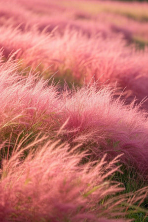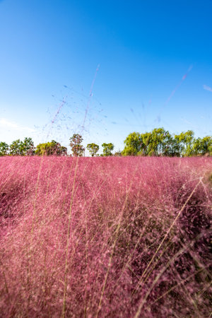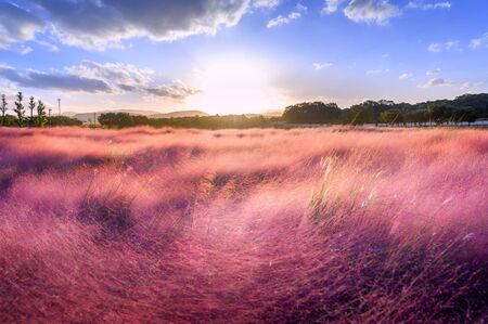 Sunset of Muhlenbergia Capillaris Pink Muhly Grass Gyeongju, South Korea