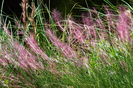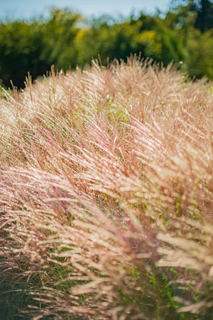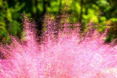 Pink Muhly Grass. Beautiful pink Muhlenbergia capillaries. Summer, autumn colors.