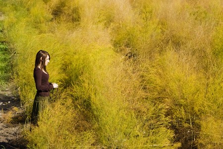 Young woman entering in a colorful field.