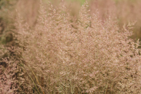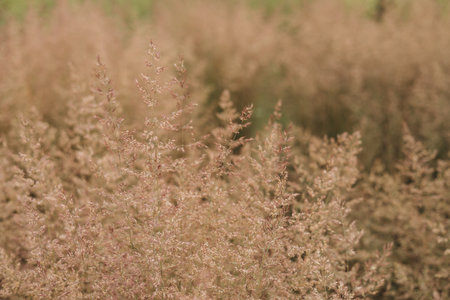 pink grass in the field - soft focus and vintage filter effect