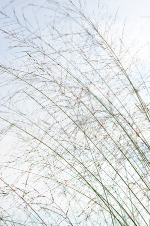 Grass blossom blowing in the wind under blue sky ,Selective focus