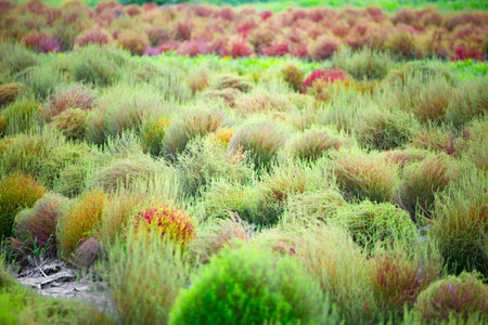 Dry kochia field in autumn season.