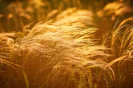 Macro image of wild grasses, small depth of field. Vintage effect. Beautiful rural nature Wild grasses at golden summer sunset vintage landscape background