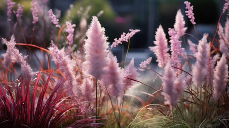 Pretty red and pink wild grass in a field