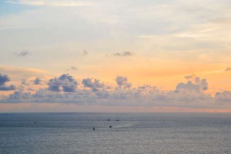 Fishing boats in sea In the morning calm ocean waves. And the sky started to morning