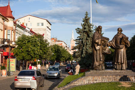 Mukacheve - Ukraine, JULY 26, 2009: Monument of Saints Cyril and Methodius in Mukacheve, Transcarpatia, Ukraine