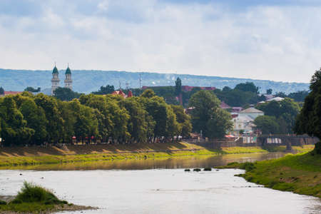 UZGHOROD - JUNE 23: beautiful view of a river bank in the Uzghorod city,Ukraine at june 23, 2013.