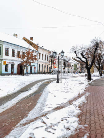 Winter on Liviu Rebreanu Street in Bistrita, Romania, 2022, January