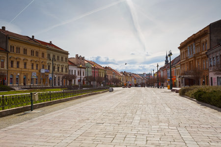 Bistrita, Romania, 2021, Liviu Rebreanu Street during the Covid pandemic