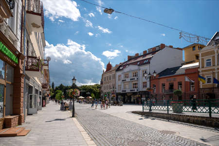 UZHHOROD, UKRAINE - JUNE 30, 2020: Streets and architecture of the old city of Uzhhorod in Ukraine