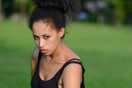 Impudent African American woman. Stylish hair. Insolent facial expression on black background, modern youth lifestyle, cocky concept