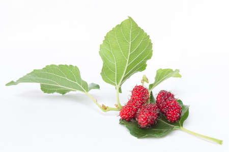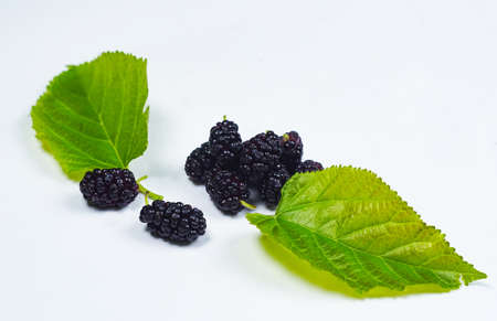 Morus alba or Mulberries are the sweet, hanging fruits from a genus of deciduous trees that grow in a variety of temperate areas around the world. Isolated on white background