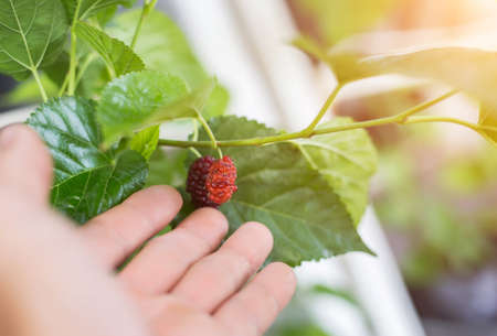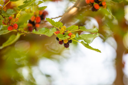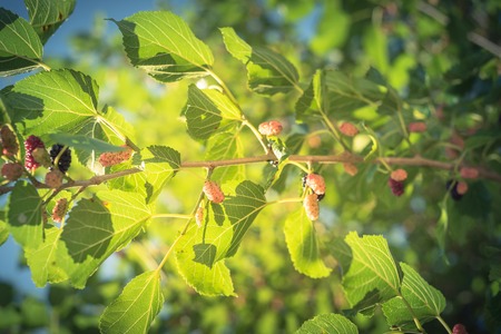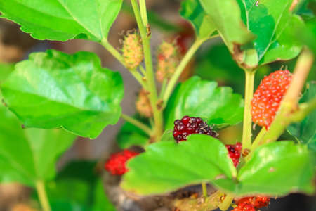 mulberry fruit red on the branch of tree on sunny day